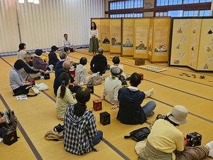 季節の和菓子を詰めた遊山箱と「お城・寺町まち歩きマップ」を手に持って、史蹟と寺社を巡ります。
