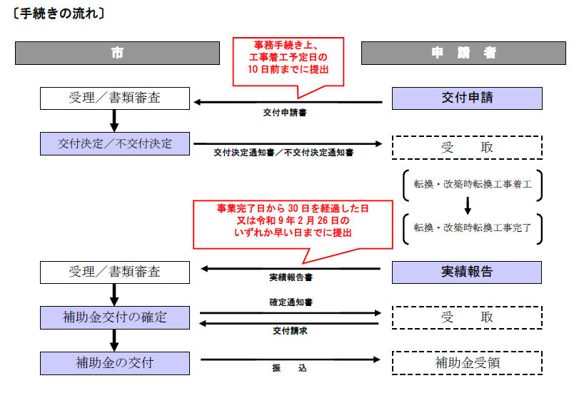 注:補助対象となる工事の着工予定日の10日以上前に交付申請書を市へ提出して下さい。工事着工後の申請は受付できません。