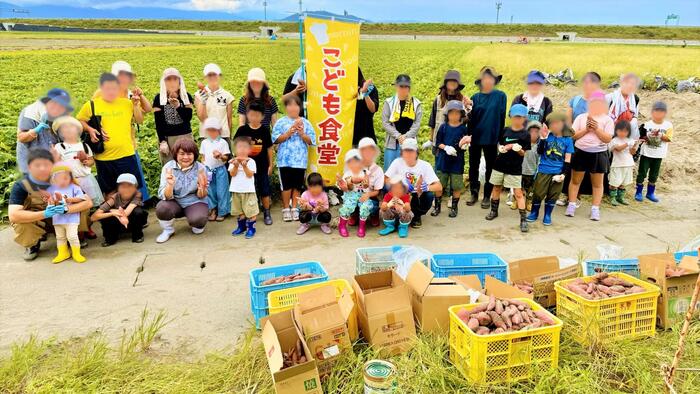 「食育体験・さつまいも収穫」は、クレエール子ども食堂やこども宅食を利用する子どもたちを中心に開催され、約50名が参加しました。食事を提供するだけでなく、実際の収穫体験を通じて“食”の大切さを学ぶことを目的とし、学校の授業だけでは得られない実践的な学びの機会となりました。子どもたちが自分で掘り起こしたさつまいもは、ご家庭で味わっていただくとともに、今後、クレエール子ども食堂やこども宅食の食事にも活用され、地域に還元されていきます。