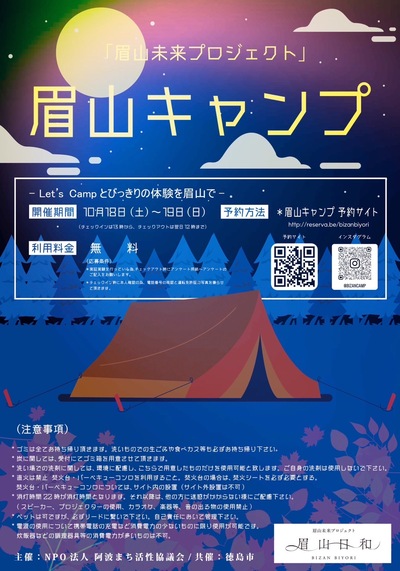 令和7年10月18日(土曜)~19日(日曜)に眉山キャンプを開催します。