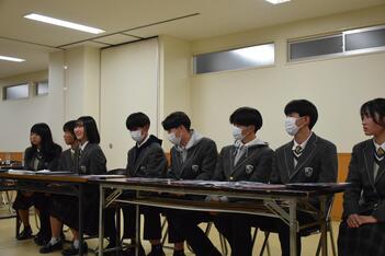 遠藤市長と徳島市立高等学校1年生の皆さんと多田校長