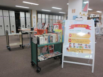 こちらは徳島大学附属図書館との連携事業の一つとして、図書館の傷んだり古くなったりして、貸出ができなくなってしまった本や雑誌を、学生のかたや職員のかた、または地域のかたがたに再活用していただくイベントとなっております。
