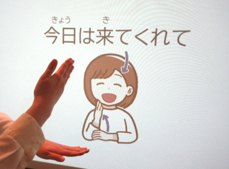 動画のキャラクターたちがおしゃべりしたり、歌ったり、踊ったりすると、通訳の方が同時に手話にしてくれます。