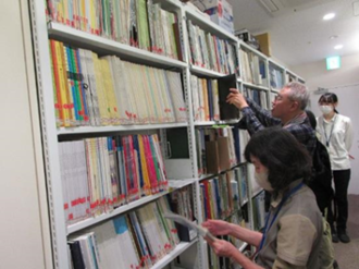 普段入ることのできない場所で、様々な仕組みに興味深い様子でした。地下書庫や6階書庫では本の管理などについて質問をいただきました。また、日頃あまり見ることのない大型本や郷土の資料などを手に取ってじっくりとご覧になられていました。返却ポストでは返却システムについて説明しました。自分が返却した本がどのように処理されているのか、市役所や駅前のポストの返却はどのように返却されているのかなど、気になっていたことを沢山質問してくださり、図書館の裏側について知る機会になったのではないでしょうか。