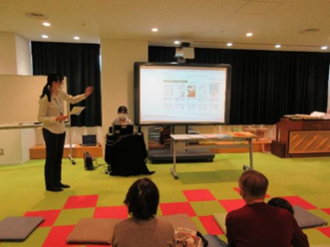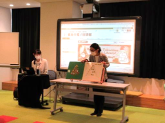 令和6年12月21日(土曜)、 はこらいふ図書館5階おはなしのへやにて、電子書籍を使用したおはなし会「電子絵本deよみきかせ♪」を開催しました。読み聞かせの他に、電子図書館の使い方や朗読機能付きのデジタル絵本の紹介も行いました。