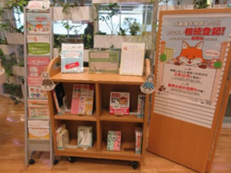 また、イベントと連動して関連本の展示もさせていただきました。展示コーナーでは、法務局発行の冊子をはじめ、関連するパンフレットなども一緒に配布いたしました。(現在展示は終了しています。)