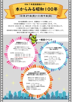 今年度の図書館まつりのテーマは「本からみる昭和100年」です。令和8年(2026年)は、昭和元年(1926年)から起算して満100年を迎えます。