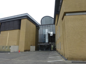 徳島中学校横にある徳島県立文学書道館の駐車場に停車します。