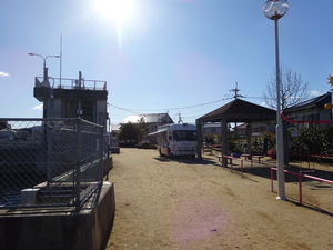 千切山公園内にある、屋根のあるベンチ付近に停車します。